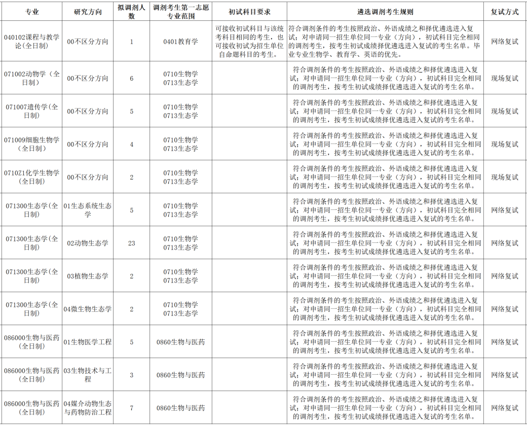 一、复试方式、缺额信息及调剂要求